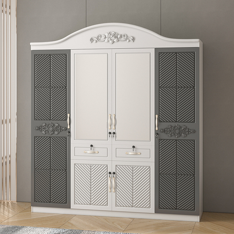 Wholesale Price Large Wardrobe with Mirror MDF Armoire Nordic Style 4 Door Bedroom Wardrobe